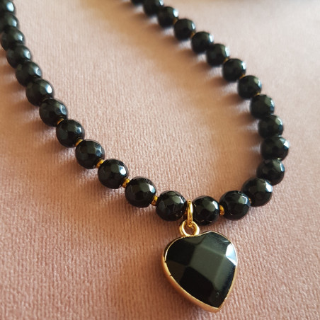 Zawieszka serce z onyksu czarnego.
