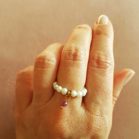 Efektowny pierścionek z perełek.
