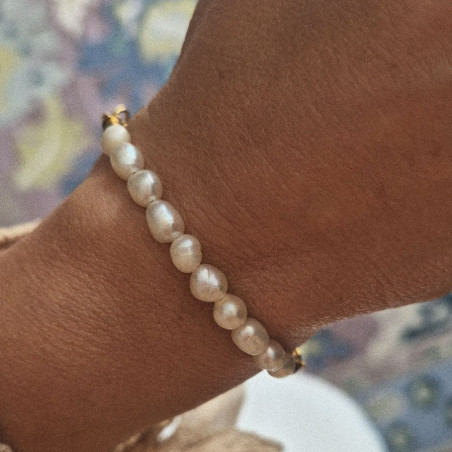 Bransoletka wykonana z pereł naturalnych oraz łańcuszka ze stali chirurgicznej.