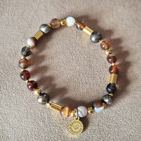 Materiały użyte do wykonania: specjalnie wyselekcjonowane kamienie naturalne z całego świata, w tym kwarc dymny, perła słodkowodna, agat, hematyt oraz stal szlachetna.