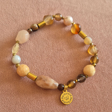 Bransoletka wykonana z kamieni naturalnych w ciepłych odcieniach beży