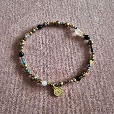 Bransoletka wykonana z kamieni oraz ze stali chirurgicznej (nie ściera się).
