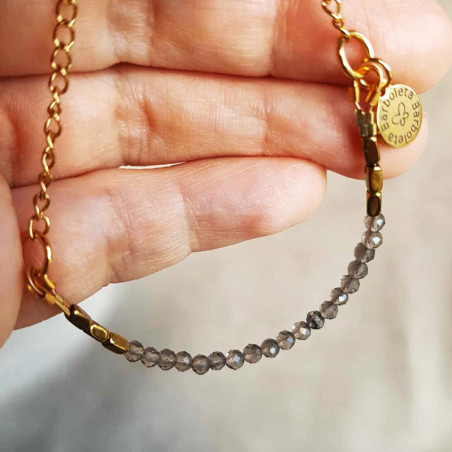 Wdzięk i elegancja! Kwarc dymny - podkreślają złociste hematyty.