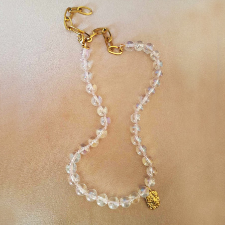 Materiały użyte do wykonania naszyjnika: austriackie cyrkonie opalizujące wysokiej jakości, bezpieczna antyalergiczna stal szlachetna.